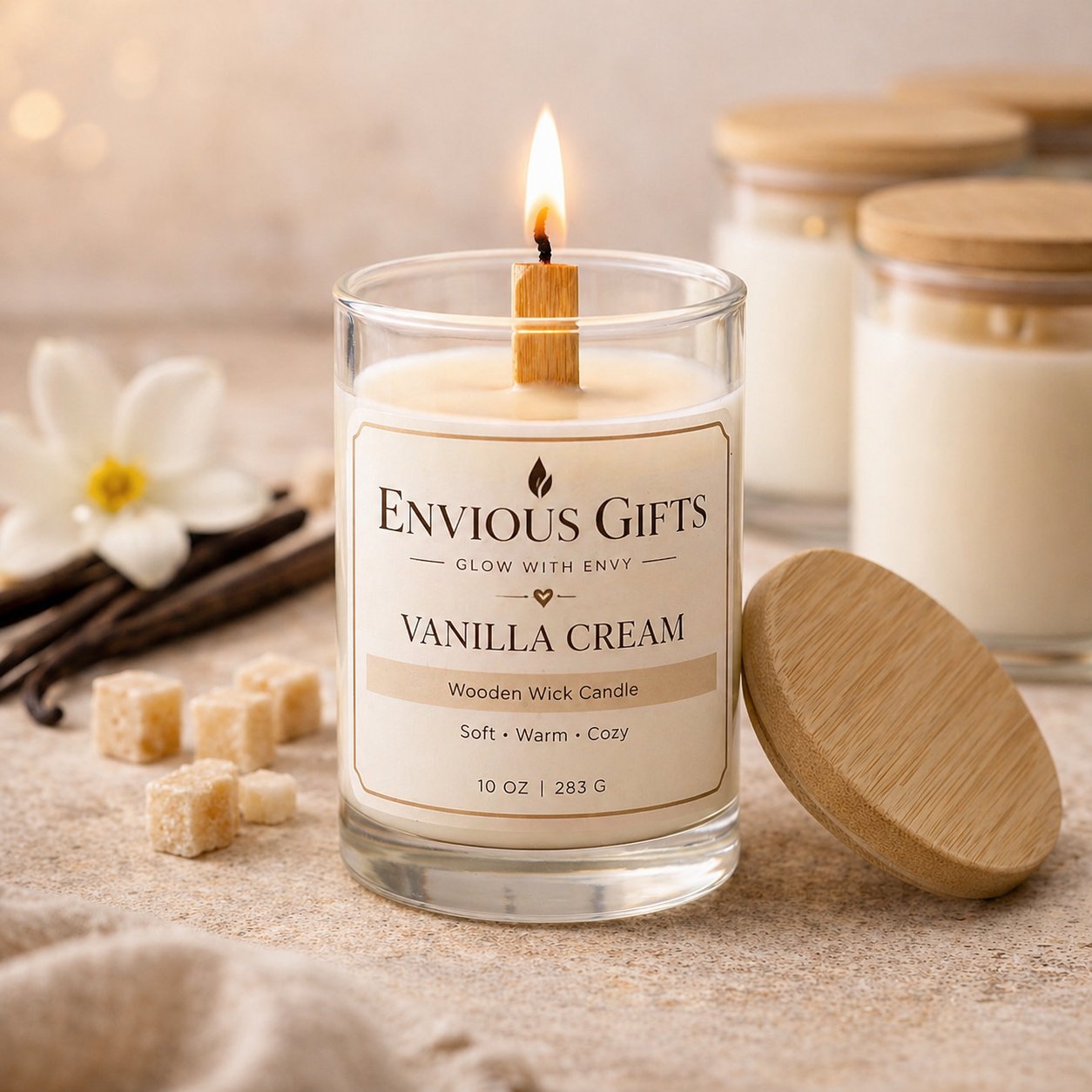 Wrap your space in the soft, comforting aroma of rich vanilla cream. This scent blends warm vanilla bean with smooth, buttery undertones to create a cozy, elevated atmosphere that feels both calming and indulgent.